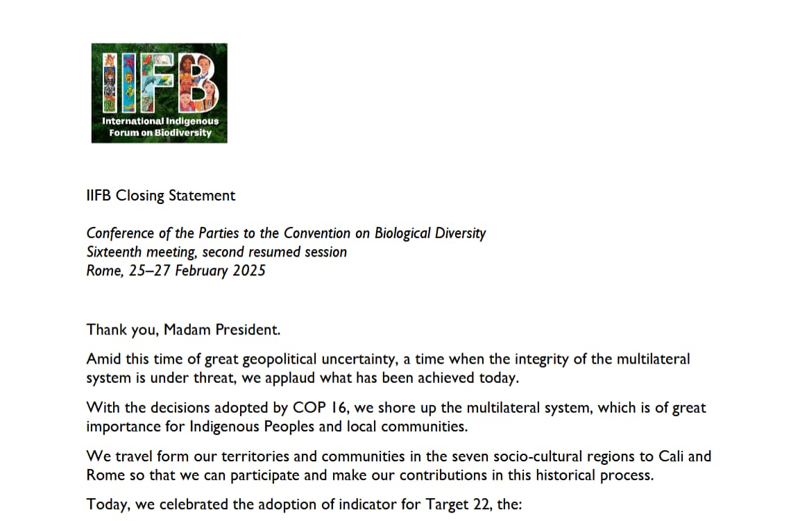 Statement on behalf of the International Indigenous Forum on Biodiversity (IIFB).